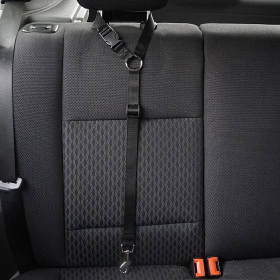 Like a leash, our seat belt has an adjustable leash with buckle that clips to secure snugly to any headrest in a car. When secure, the clip on the leash snaps to any dog collar you have on your pet.