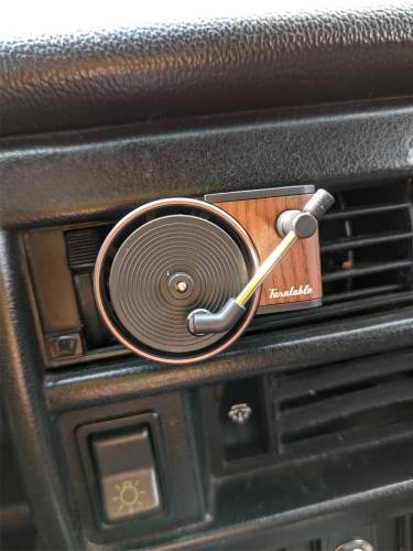 With a retro wood design, gold magnetic head, textured base, and vinyl record detail, this car accessory can take you back to an era of record players and oldie classics. The freshener is made of real wood, metal, and aluminum for a premium feel and look. Whether you have an old-school whip or modern sports coupe, a touch of 60s and 70s retro will have you driving with a classic style.