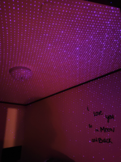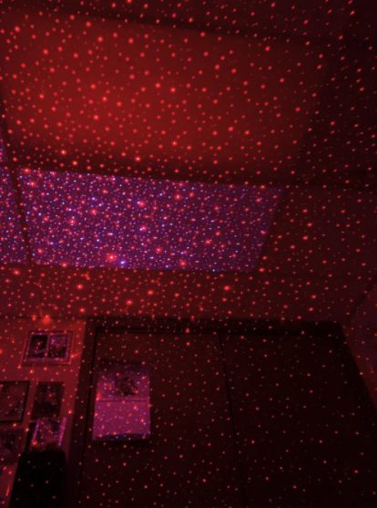 Our USB Ceiling Night Light comes in a choice of red or purple LED light. When turned on, you can turn the dial to change lighting effects and patterns, from stars to dots to constellation-like projections.