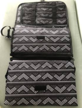 Absolutely fantastic changing bag/station. It looks beautiful and has many compartments to fit in all the bits you might need for your baby.